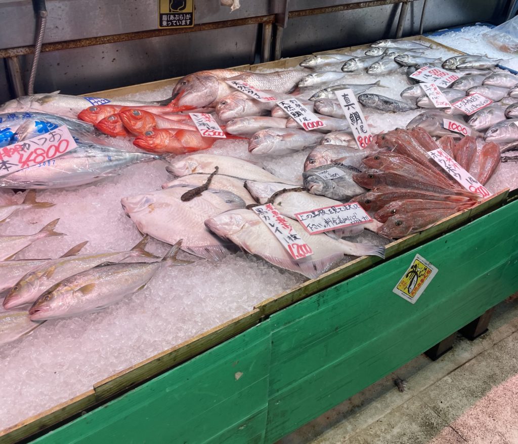 日戻り漁で水揚げされた新鮮な魚を販売している鮮魚店で、種類も豊富です。